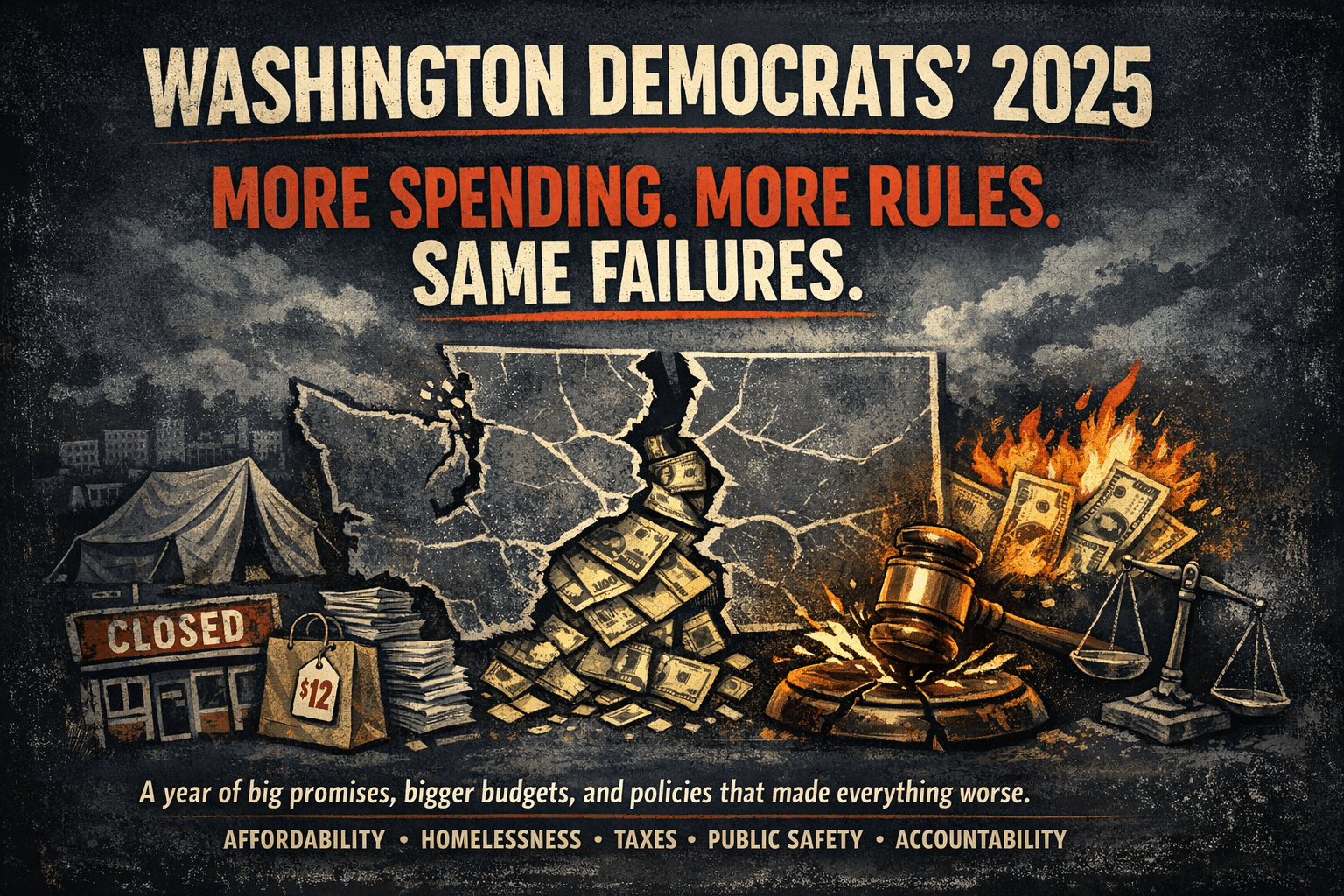 Let’s start with affordability, because that one hit everyone. Democrats spent the year insisting Washington’s soaring cost of living was unavoidable—while expanding sales taxes, hiking bag fees, layering on new labor mandates, and quietly taxing more everyday services. Dining out costs more. Small businesses are squeezed harder. Consumers pay the difference. Olympia’s response? Another lecture about “equity” and a promise that the next policy will fix the damage caused by the last one.
