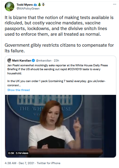 King County’s unscientific vaccine mandate on all restaurants is forcing several smaller establishments to stop offering indoor dining, because they can’t afford (or find) the workers needed to check customers’ vaccination status so they can serve them. Yesterday the restaurants and bars with fewer than 12 seats were added to the county’s vaccination mandate, which previously applied to only larger establishments. Some of the smaller eateries decided to return to just take out and drive-through orders only, rather than lose money because of this latest government attack. (KOMO News)
