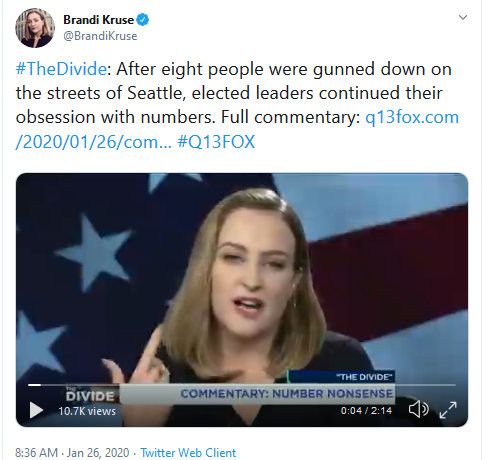Last Friday Shift also posted an Op-ed from former Seattle City Council candidate Ann Davison Sattler in which she announces the “Democrat party is over for me.” Davison Sattler, who took on Debra Juarez in the 2019 elections, stated, “it’s time for me to leave the Democratic Party which I’ve considered my political home, and casting my fate with a Republican Party which is showing it wants to solve problems we face on our streets and the deterioration of our civil society.” (Shift)