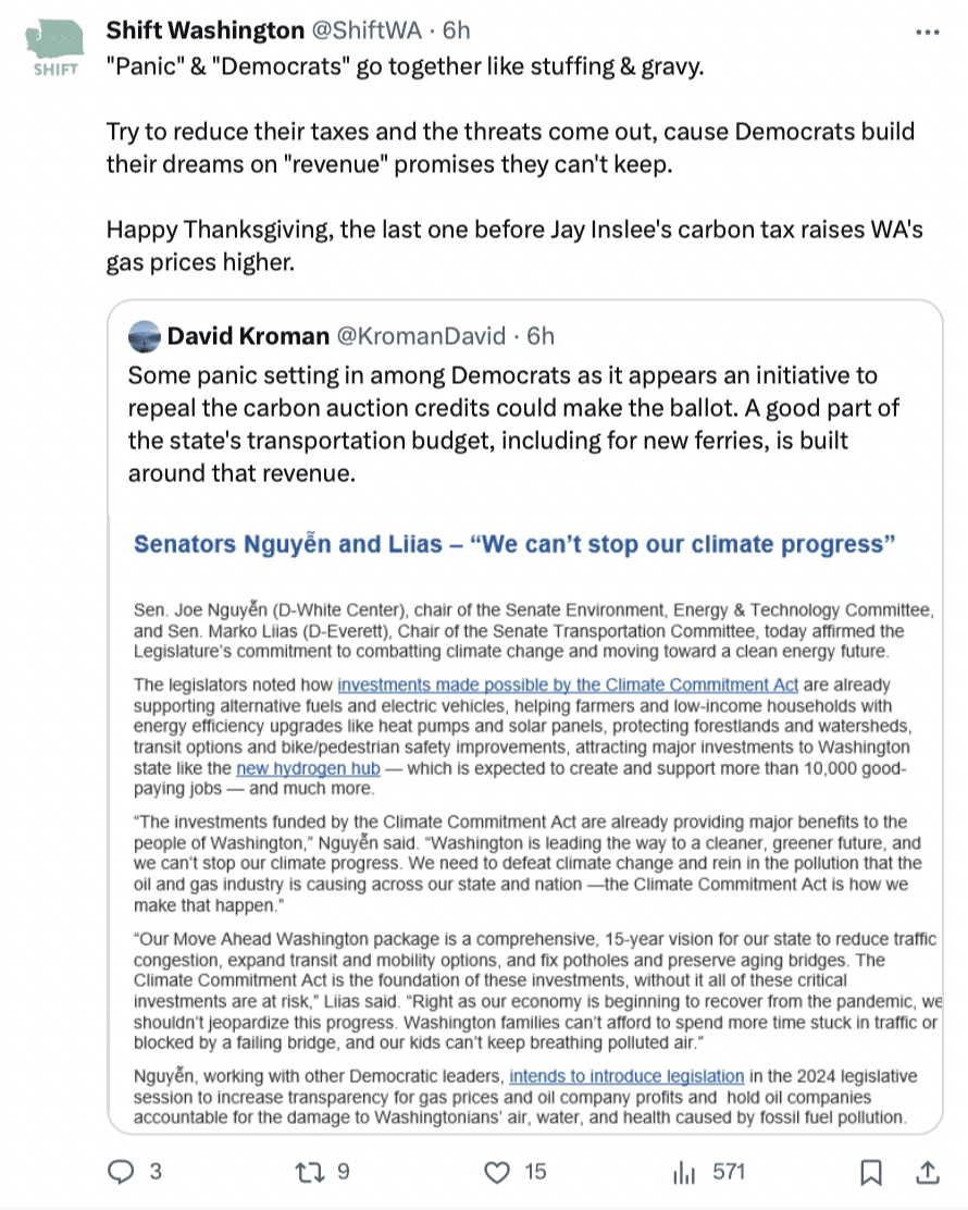 SUMMER IS LONG OVER, BUT JAY INSLEE AND DEMOCRAT LEGISLATORS ARE STILL TRYING TO CONVINCE VOTERS THAT NO ONE KNEW THEIR CARBON TAX WOULD MAKE GAS PRICES GO UP
